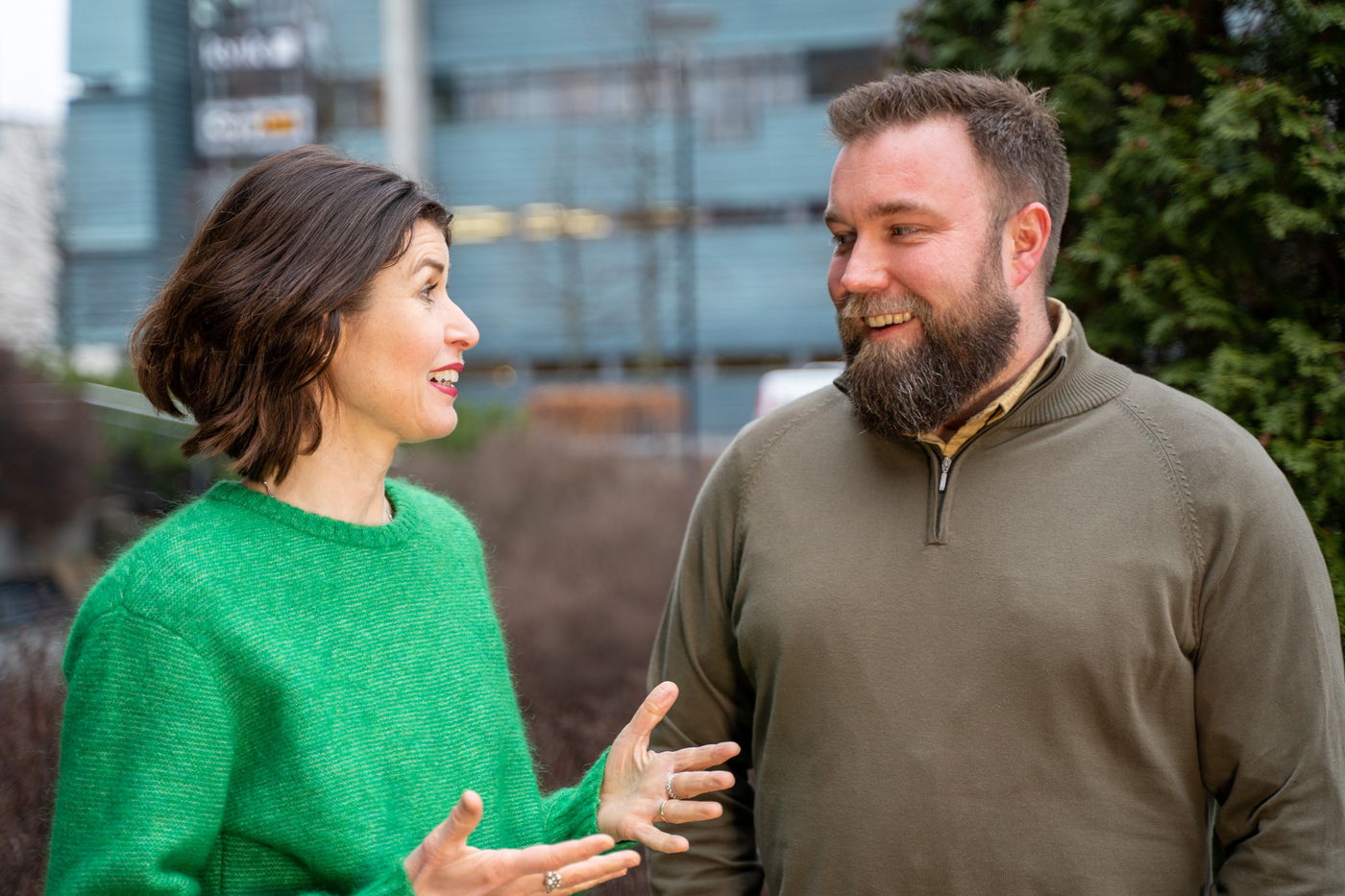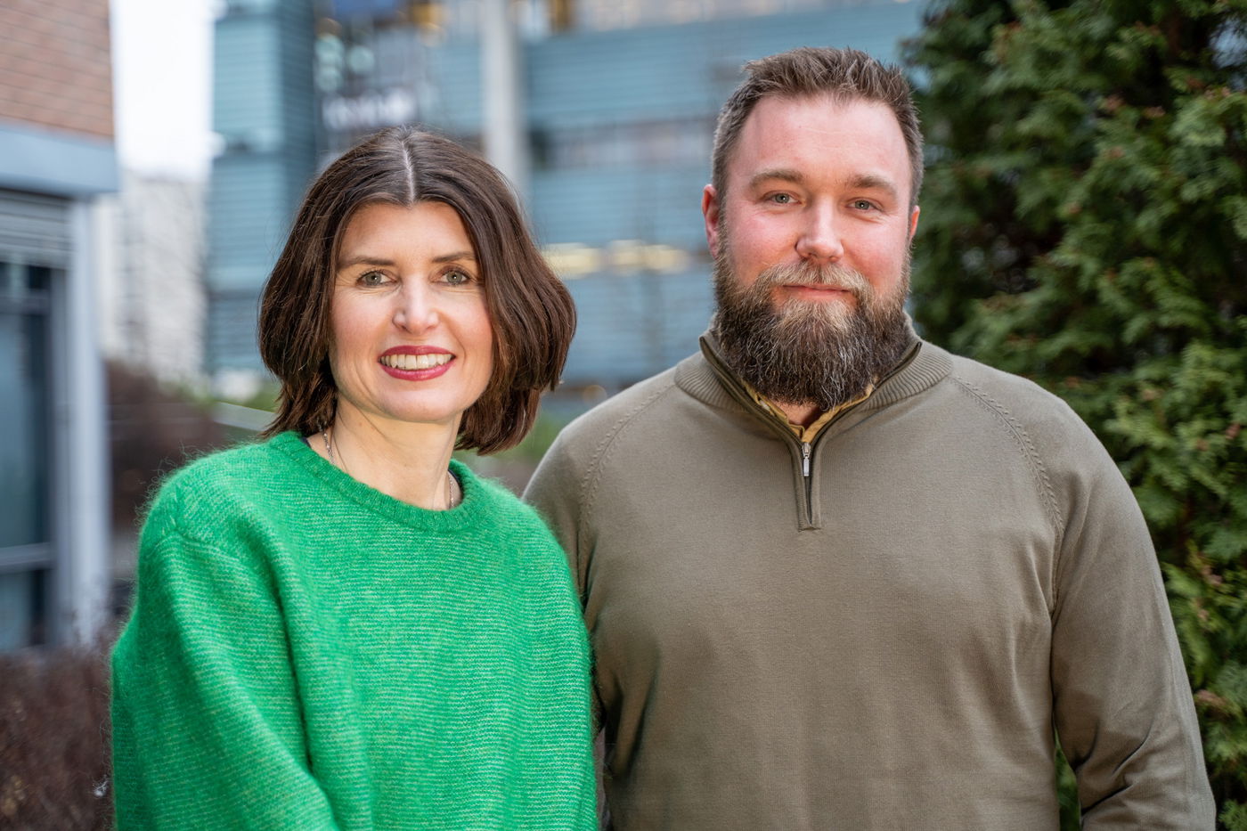 Anne-Kristin Imenes, seniorrådgiver og psyklogispesialist i KORUS Sør, står her sammen med generalsekretær i Barn av Rusmisbrukere, Marius Sjømæling. I et samarbeidsprosjekt har de kommet fram til 11 spørsmål som kan stilles til barn og unge for å få i gang de gode samtalene. Foto: Håkon Lexberg