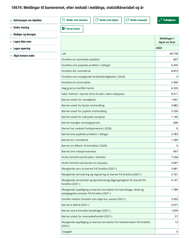 *Kilder: Statistisk sentralbyrå. Skjermdump, www.ssb.no.